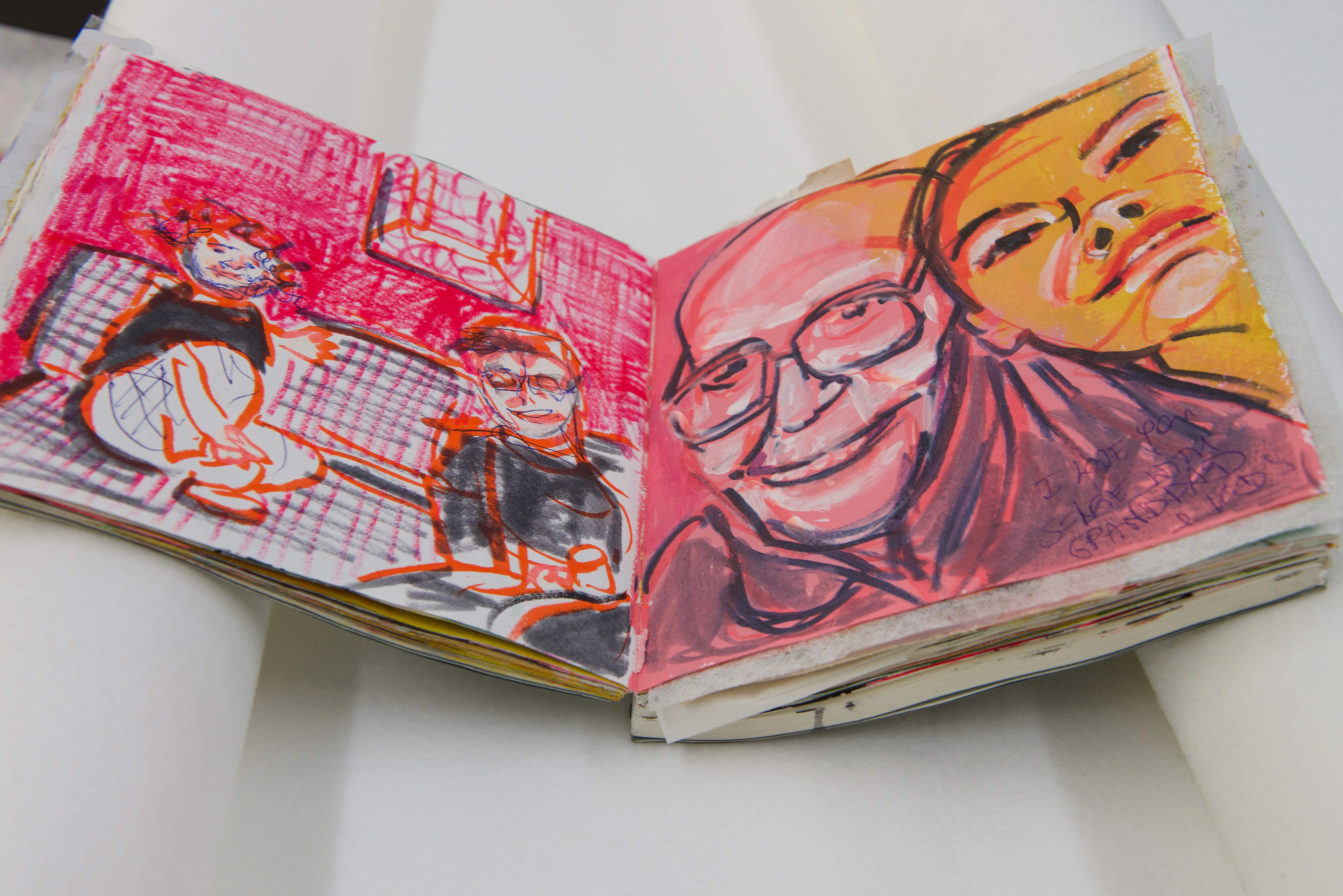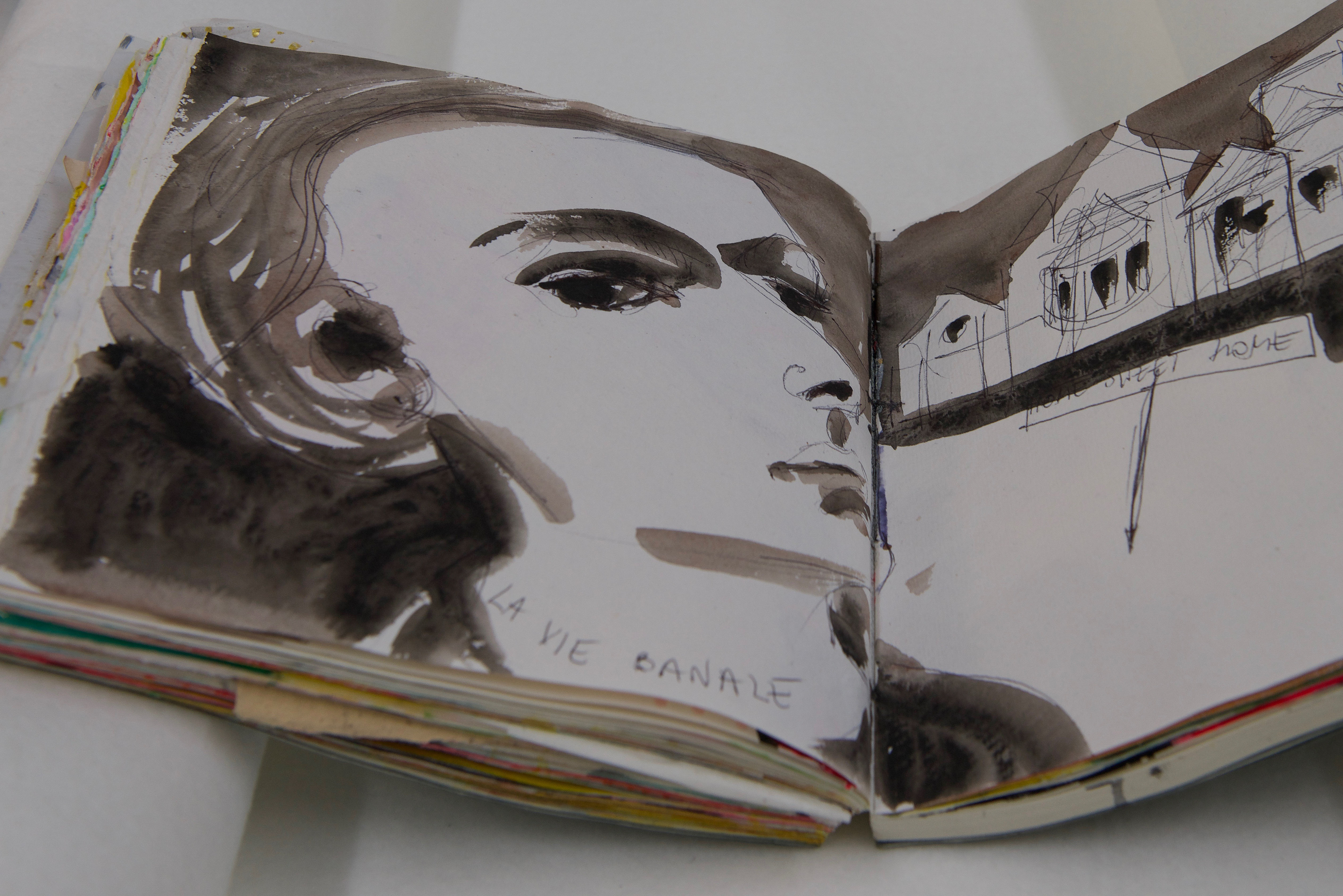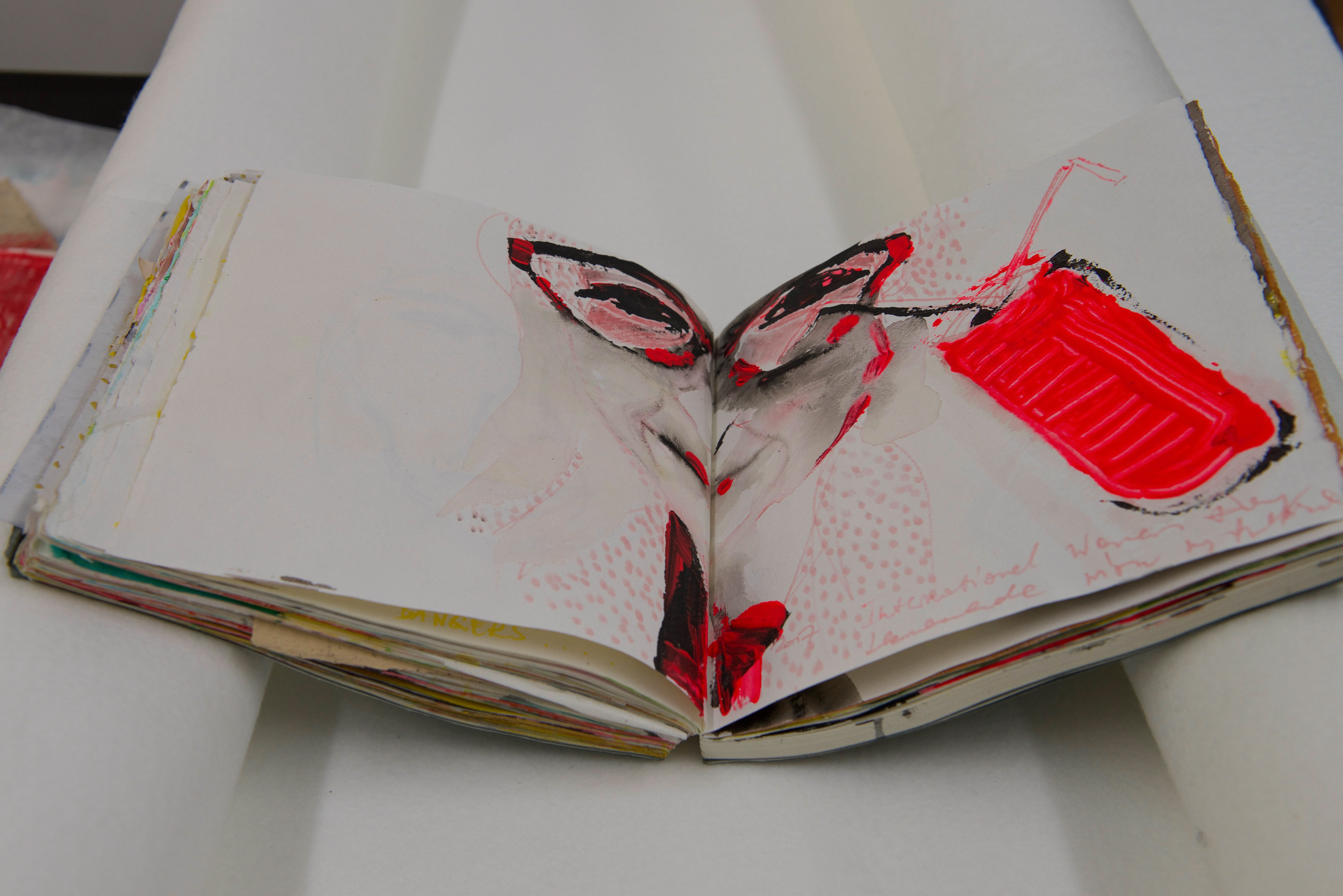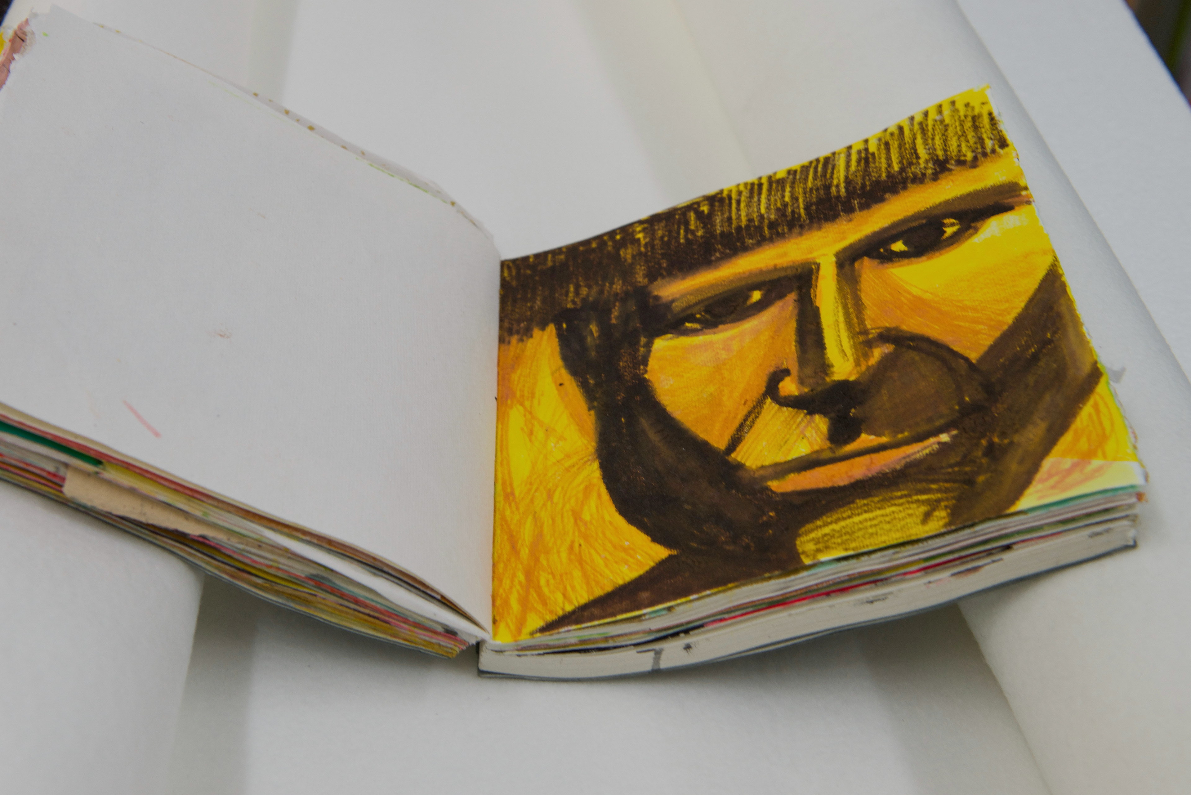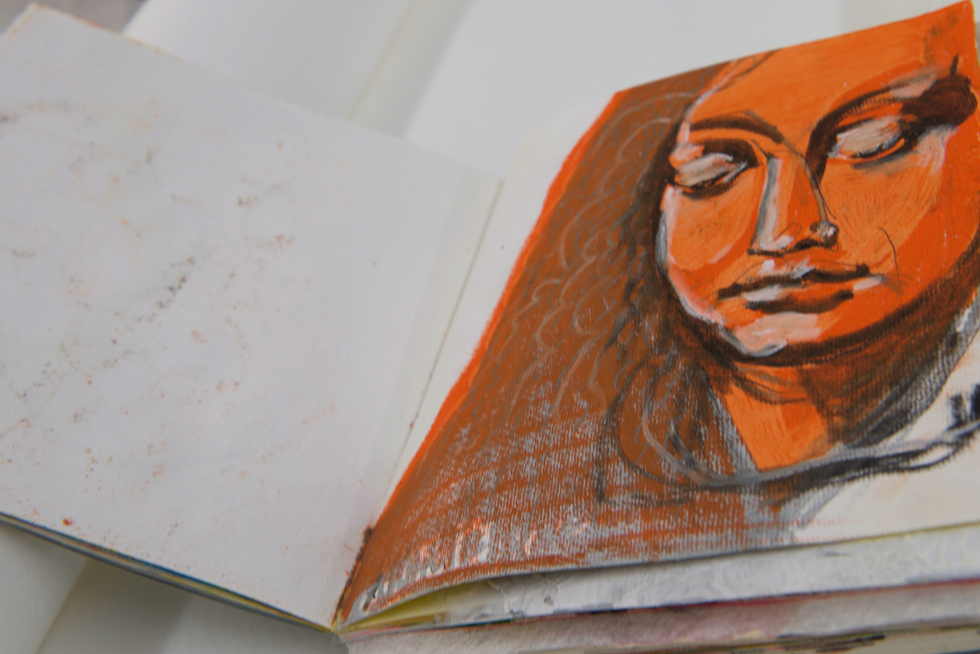 Face Book is an ephemeral, sketch-like form of a day-by-day diary with a register of everyday emotions. It contains 62 separate compositions, executed on paper, bound into a notebook/diary. In a way its form seems to be quite universal because it explores my interest in contemporary self-presentation techniques and tools that enable us to create and constant control our self-image, this diary is a collection of 'hand-made selfies'. Several images incorporate text in various languages: English, French, German or Polish. Face Book is very personal too, registering some uncomfortable facts about ageing for instance, facts that are embed into our lives by cultural pressures on women and men to stay perfect in terms of their looks, leaving us conscious about the way we present ourselves. Book's introverted content was inspired by an echo of European romanticism, especially poetry focused on inner feeling that was translated into more universal visual language. The diary form is not new of course, and I reminiscent one particular sketch diary that made a huge impression on my artistic approach, especially on the belief that we just have to create in whatever conditions and whether we can change our environment or not. This was a little diary I restored in the past, it was an anonymous object from Belsen-Belsen Camp museum, striking, crude images of camp everyday life in bold colours, using the form of sort of a comic, depicting humans with animals’ heads. Cruelty of this camp reality closed in a tiny pamphlet form, amazing quality of the drawings raised a question about inevitability of creative process… I've used mixed-media to implement techniques that are slightly incidental, are not leading to perfectly designed image. I feel that materials I've used are also feminine, intuitive: messy charcoal, oil stick, pencil, acrylics, salt printed image, lino, collage with printed material, textile, plastic etc. This collection of various material is coming from my belief that historically women were gathering the relics of the past, they were informal collectors of memories and I wanted to show that connection. Face Book was initially meant to be a very private record, and was not to be displayed, but during Artists’ Open Studios days in Hackney in 2017 it became a subject of a lot of interest from the visiting public and it was suggested that it should be published in form of an artistic book.